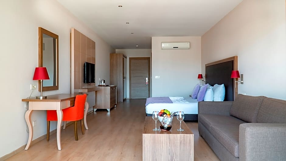 PENTHOUSE SUNSET is 1130 square feet and includes either a king-size bed 150-183 width or 2 single beds 80-130 width plus living room, balcony, extra beds on demand, satellite tv , cable tv, hairdryer, tea and coffee making facilities , ironing set, safe, and slippers and is Wheelchair-accessible.